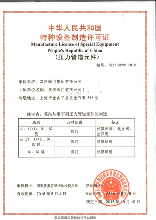 特种设备制造许可证